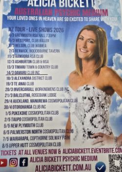 ALICIA BICKETT - Australian Psychic Medium - March 14th, tickets available from the Club @ $50.00 each